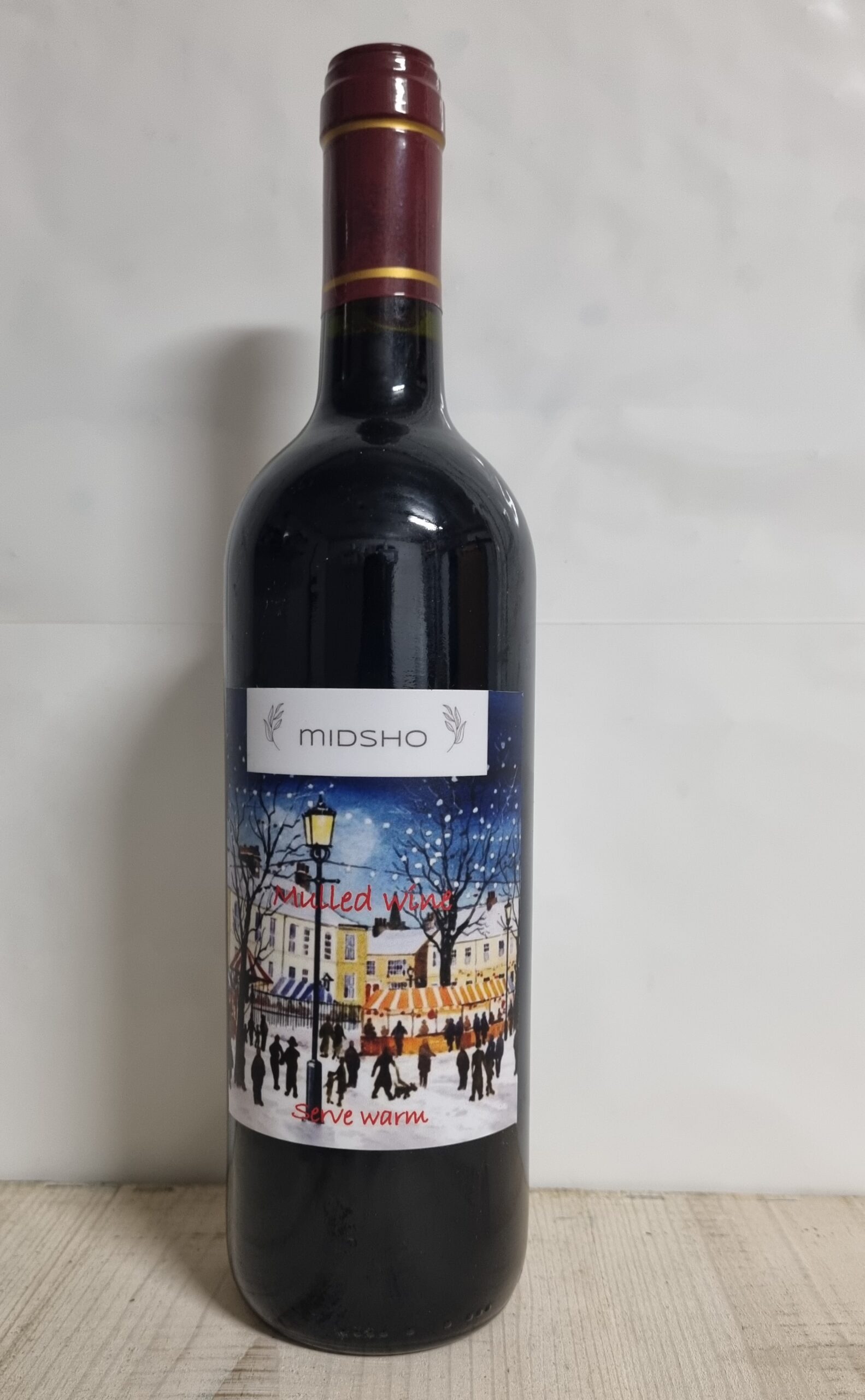 A spiced beverage containing a blend of British wine made from imported grapes, glucose-fructose syrup, cinnamon extract, Clove extract, Orange extract, and Lemon peel extract